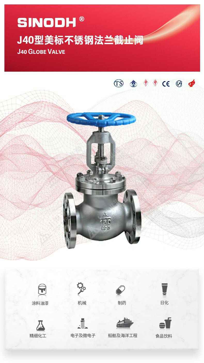 J40型美标不锈钢截止阀,为米兰体育·米兰网站页面入口-米兰online(中国)自主研发生产。本产品的设计制造符合美国国家标准ANSIB16.34,美国石油学会标准AP1 6D和AP I 600要求,产品结构紧凑密、刚性好、封性性能优秀是一种最常见的启闭阀,利用闸板的上下工作来接通(全开)和截断(全关)管道中的流体介质。