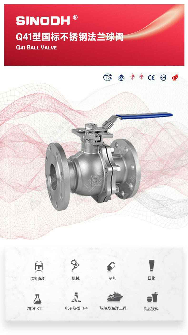 Q41型国标不锈钢法兰球阀,为米兰体育·米兰网站页面入口-米兰online(中国)自主研发生产。本产品设计制造标准符合GB/T12237、GB/T 1 2224标准该产品的球体在介质压力作用下,球体能产生-定的位移并紧压在出口端的密封面上,保证出口端密封。适用于水、溶剂、酸和天然气等-般工业介质,也适用于工况恶劣的介质,如氧气、过氧化氢、甲烷和乙烯等介质。